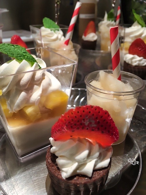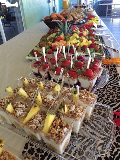 Tropical Shrimp (marinated in Asian sauce) with fresh pineapple and mango on a skewer with shredded coconut $3.50