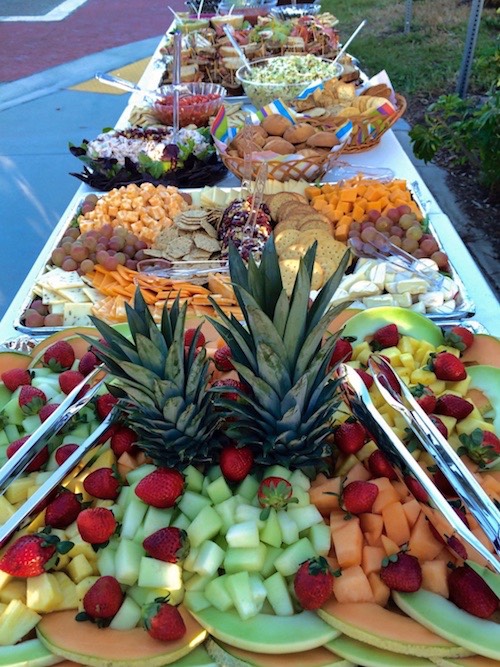 An assortment of cheeses, cold cuts, fruits, nuts and crackers. Chef’s creation!